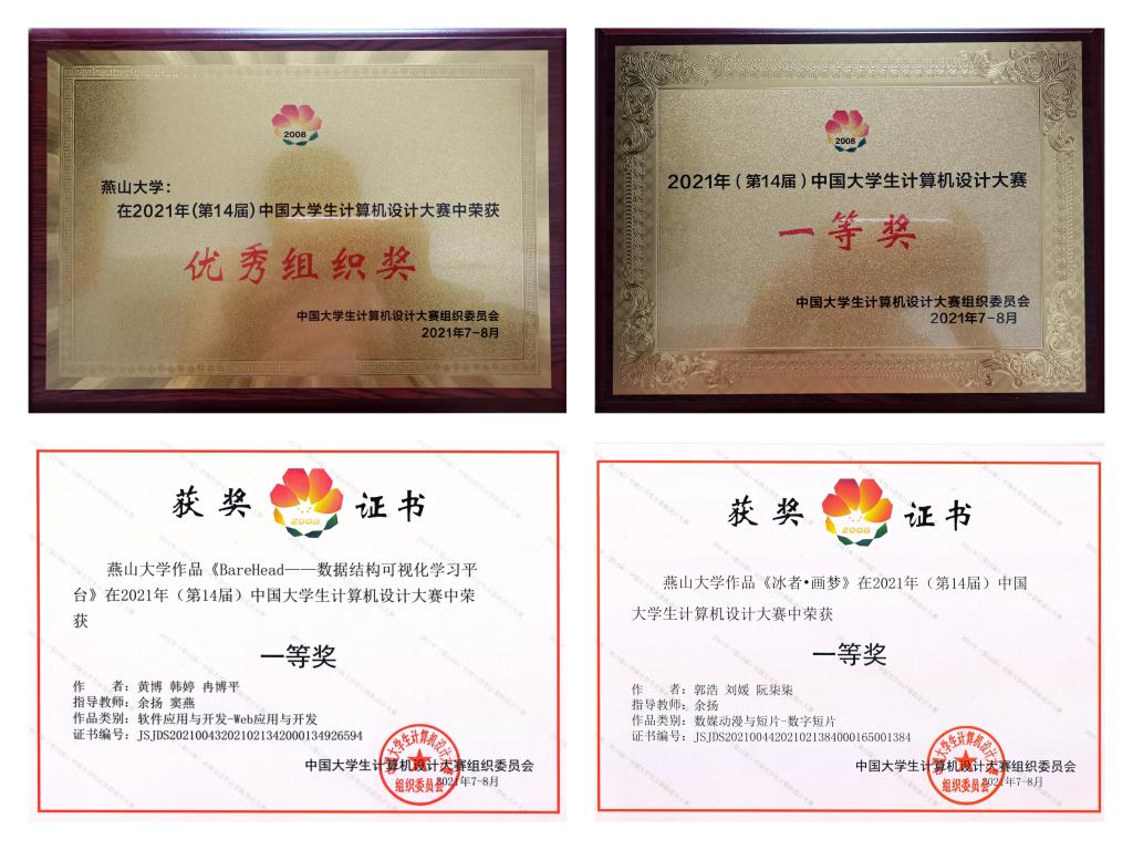 2021年09月16日燕山大学在2021年(第14届)中国大学生计算机设计大赛中喜获佳绩
