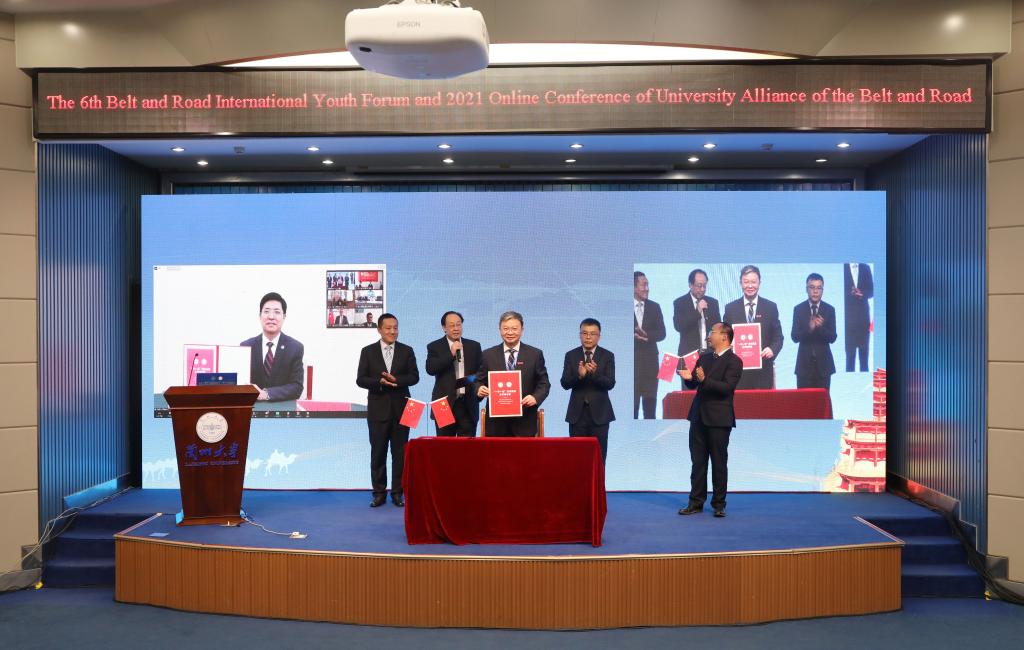 【新闻中心讯】12月10日,第六届“一带一路”国际青年论坛暨“一带一路”高校联盟论坛在兰州大学开幕。燕山大学受邀参加了此次线上会议,校长赵丁选出席线上签约仪式。线上会议赵丁选出席线上签约仪式(以上照片由国际合作处新闻中心 蔡巧怡 提供)本次论坛由中国驻韩国大使馆、韩国“一带一路”研究院、韩中文化友好协会、甘肃省教育厅、甘肃省人民政府外事办公室、甘肃省人民对外友好协会主办,兰州大学、甘肃省内外各联盟高...