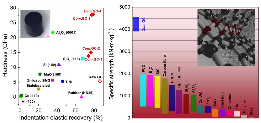 【新闻中心讯】燕山大学亚稳材料制备技术与科学国家重点实验室田永君课题组的赵智胜教授等人与国内外科学家合作,在新颖性能组合的碳材料研究中取得重要进展。研究成果以“Compressed glassy carbon: An ultrastrong and elastic interpenetrating graphene network”(压缩玻璃碳:一种超强弹性交联的石墨烯网格)为题在线发表在2017年6月9日的Science Advances上。Science Advances是Science的第一个综合性子期刊。压缩玻...