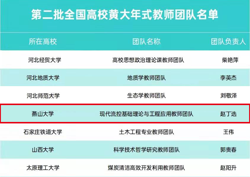 2022年01月05日燕山大学赵丁选教授教师团队入选第二批“全国高校黄大年式教师团队”