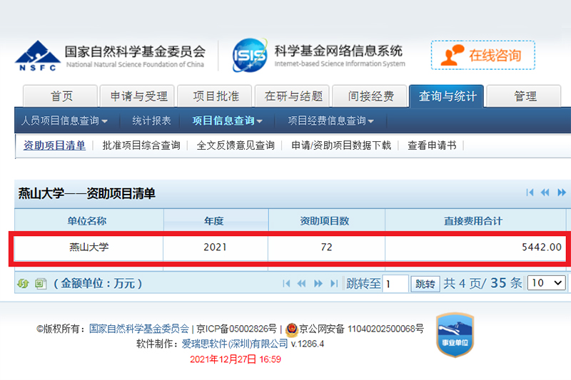2021年12月27日燕山大学获批2021年度国家自然科学基金项目72项