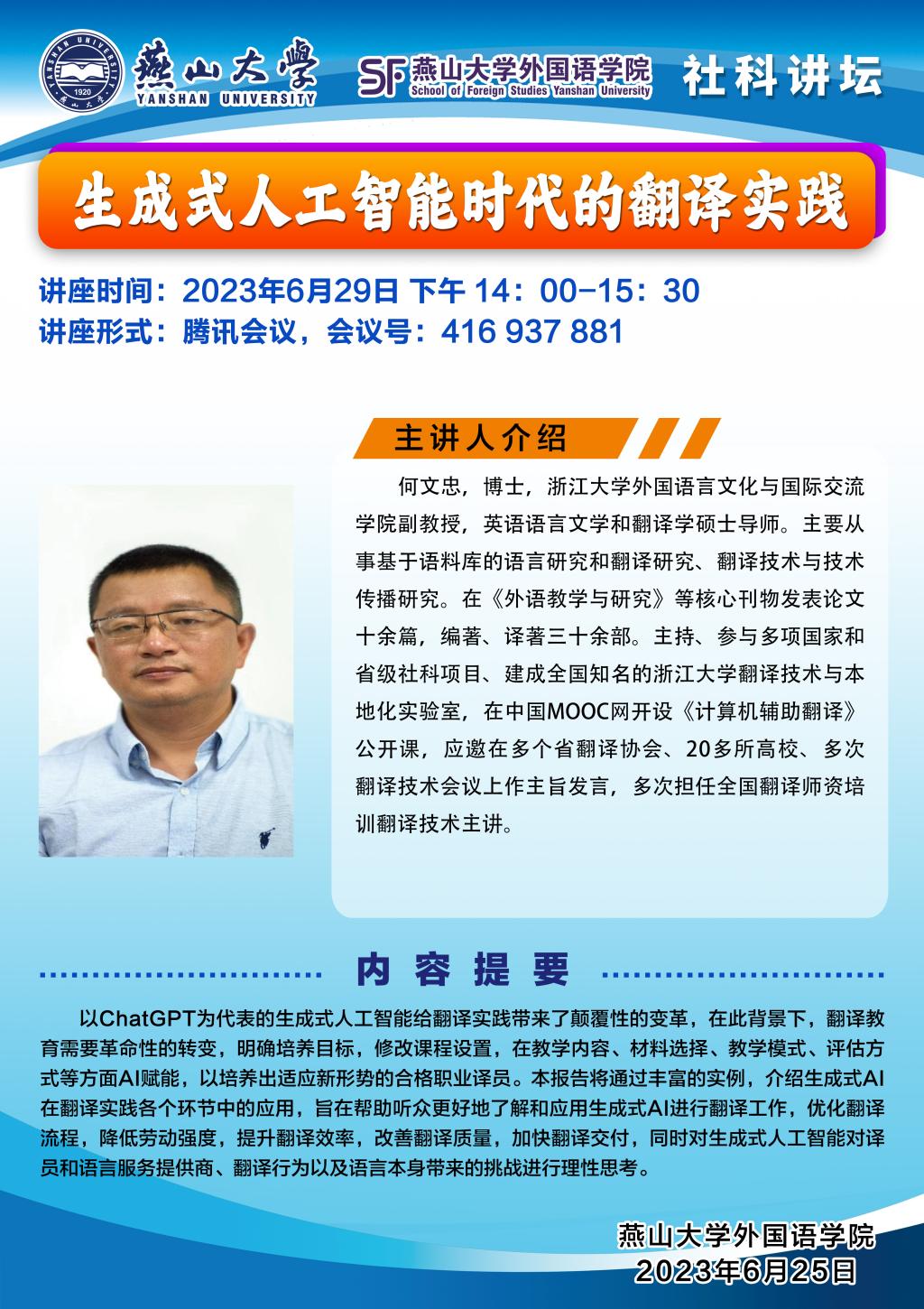 乐竞体育在线讲座《生成式人工智能时代的翻译实践》