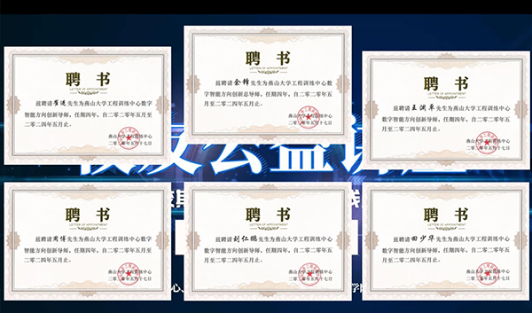 随后,燕山大学工程训练中心邀请6位校友担任中心数字智能方向的创新导师,信息科学与工程学院软件工程专业和计算机专业聘请6位校友担任两个专业的企业讲师,并给他们在线颁发了聘书。