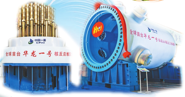中国一重生产的全球首台华龙一号核反应堆压力容器