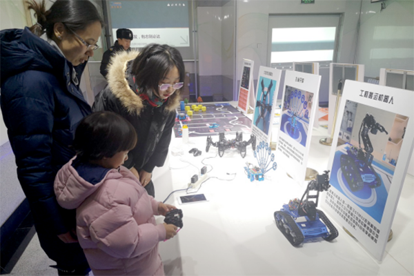 这几天东校区世纪楼一楼大厅里非常热闹,总有小朋友好奇地摆弄这些仿真机器人,睁着大眼睛,兴致勃勃地问这问那。校庆办公室研究生助管肖楠俯身低头,耐心地为他们讲解这些机器人的用途和功能。不光是孩子们,这里的展品也吸引了很多大学生和教职工驻足观看。文法学院大四的东方滢同学很有感触:“这些机器人形态各异,功能多样,有的可以识别色彩,有的可以跳舞唱歌。通过近距离体验,我们可以充分感受到科学的魅力,燕大人倾心“中国智造”,未来一定更美好!”