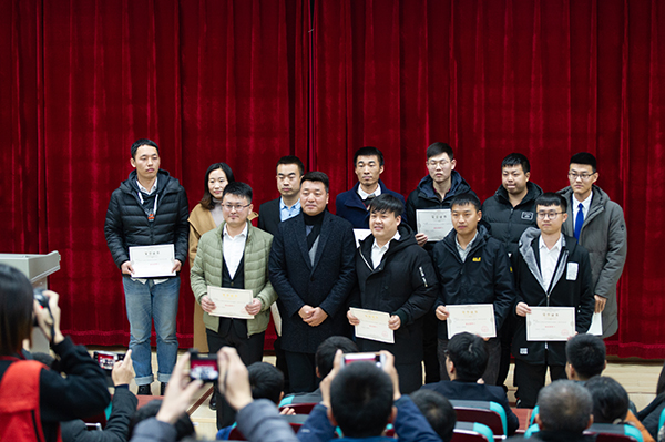 燕山大学机械工程学院党委书记董国疆为获奖选手颁奖