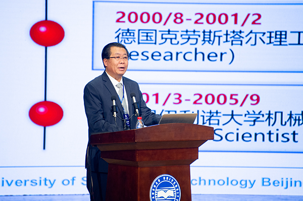 上午9:05,大会主论坛在东区大学生活动中心正式开始,5位专家先后作了高水平的主旨报告。燕山大学张立峰教授作了题为《高品质钢铁材料洁净化、精准化、均质化冶金技术》的报告,他从高品质钢的“四化”要素、钢中非金属夹杂物的来源及对高品质钢性能的影响等进行了汇报,内容深入浅出,简明扼要,引发了与会人员的深刻思考。浙江大学徐兵教授作了题为《大型重载作业液压机器人》的报告,抓住了国内外研究热点,报告分析清楚透彻,有很高的实用性和研究性。华东理工大学张显程教授与大家分享了《为学为师的些许感悟》,从如何认识自己、精思国计、培养批判思维、协同创新等方面,结合自己切身经历进行了汇报,内容发人深省,意义非凡。合肥工业大学訾斌教授作了题为《柔性驱动机器人发展与展望》的报告,从现代相关领域的研究出发,对未来机器人的发展做出大胆展望。中国地质大学(武汉)丁华锋教授作了题为《机构智能设计系统基础理论与高端装备创新》的报告,讲述了机构基础智能设计的基础理论和应用,报告内容紧跟科技前沿,与会师生共享科研盛宴。