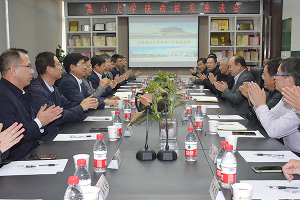 10月29日下午,赵险峰、赵丁选一行参观了陕西隆基建设集团有限公司(下简称“隆基集团”),公司副董事长、我校校友、燕山大学陕西校友会会长郭俊杰等热情接待了考察团一行。在隆基集团会议室,我校考察团与部分陕西校友代表举行了座谈。赵险峰指出,陕西校友会虽然成立时间短,但充满活力,工作卓有成效。他表示,此行目的一是看望陕西校友;二是认真听取校友们对百年校庆工作、校友工作和学校事业发展的意见,邀请校友们明年校庆回校共襄盛举;三是加强与校友企业合作,产学研协同,聚集校友优质资源,为实现燕山大学办学目标共同打拼。赵丁选介绍了学校近期发展成就,在场校友备受鼓舞和振奋,纷纷发言,对学校有关工作提出了建设性意见和建议。