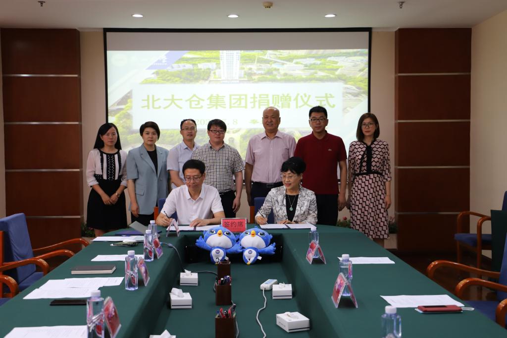 为祝贺我校百年校庆,北大仓集团向我校捐赠特制校庆专用酒和伴手礼,校教育基金会代表和北大仓集团签署了捐赠协议,颁发了捐赠证书并送上校庆吉祥物燕宝作为留念。(编辑 褚玉晶)
