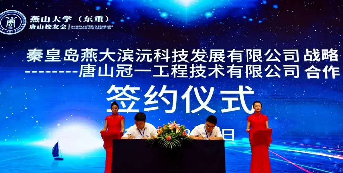 在签约环节,燕山大学白振华教授与佳源集团、唐山利众精密制造有限公司,秦皇岛燕大滨沅科技发展有限公司与唐山冠一工控技术有限公司分别签署了战略合作协议,河北福航律师事务所与校友企业代表签署了无偿提供法律服务的合约。