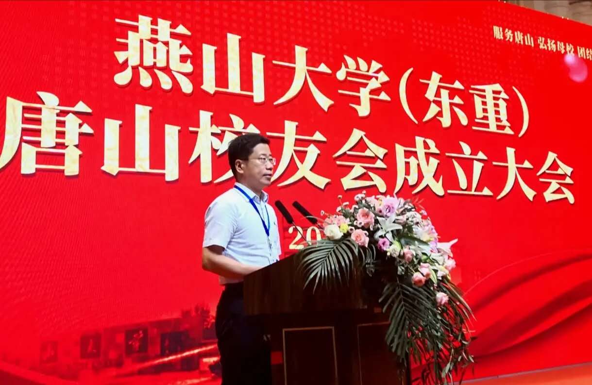 赵丁选代表校友总会宣布燕山大学(东重)唐山校友会正式成立,与名誉会长张玉柱一起揭牌,并向唐山校友会授旗。随后他向校友们介绍了近年来学校在各领域取得的突出成绩,表达了全校团结一致,力争跨入“双一流”高校行列的决心。与会校友深受鼓舞,会场多次爆发热烈掌声。