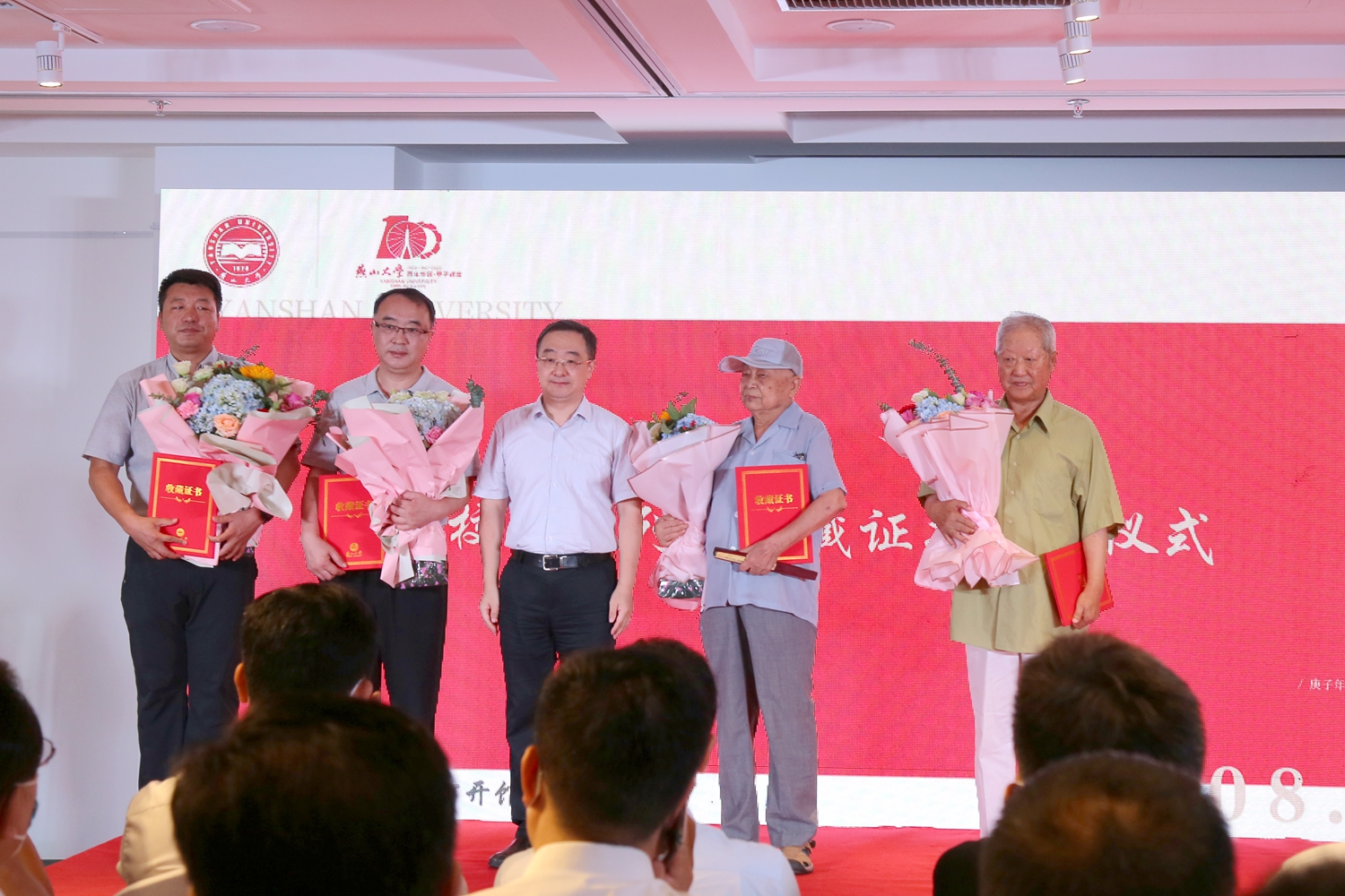为在校史陈列馆建设过程中做出重要贡献的离退休教师代表颁发荣誉证书