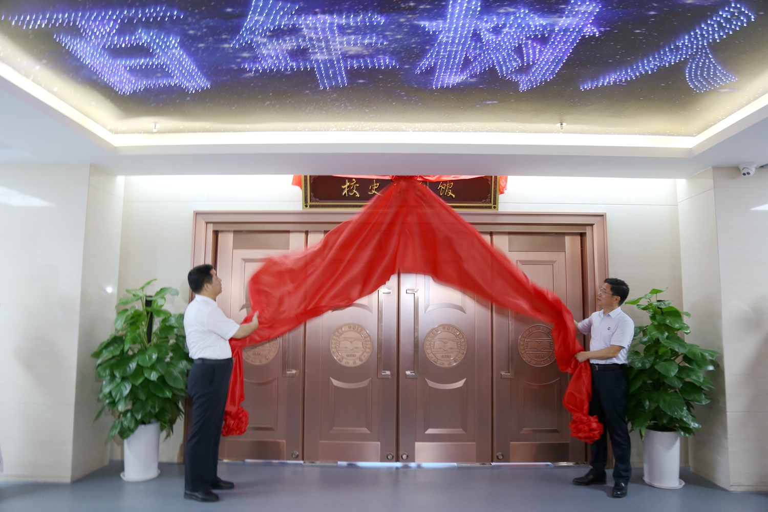 赵险峰与陈玉国共同为校史陈列馆揭牌,并与其他与会嘉宾参观了校史陈列馆。