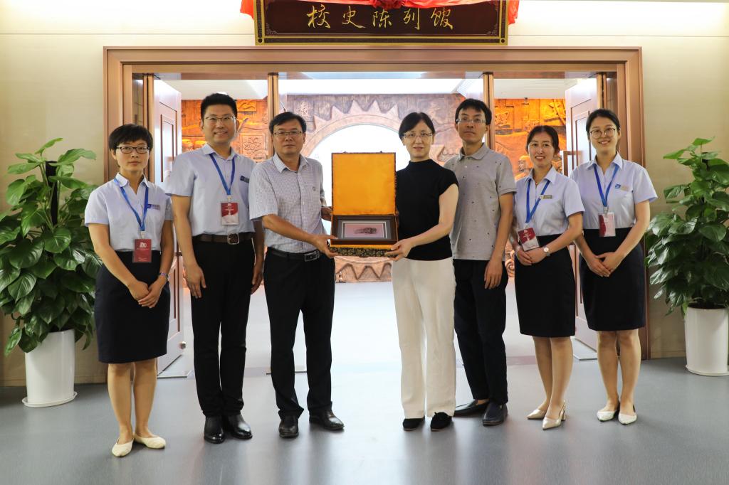 开馆仪式结束后,李新美向校史陈列馆赠送了开馆礼物——哈尔滨工业大学1920年校址铝板画。“器以载道,物以传情”,画中的老建筑雕刻着岁月的痕迹,依附着情感与记忆,见证了燕山大学和哈尔滨工业大学风雨兼程、互相支持,体现了两校血脉相连的深厚情缘。随后,燕山大学校史陈列馆馆长张振华与李新美进行了深入交流,张振华表示,两馆之间互赠的是礼物,拉近的却是两校牢不可破的情谊。李新美的到访是燕山大学校史陈列馆一次难得的学习机会,校史陈列馆工作人员不仅获取了大量业内相关信息,而且进一步开拓了自身工作思路,希望今后能够与哈工大博物馆携手共进,共同发展,在新百年为两校精神和文化建设作出应有的贡献。