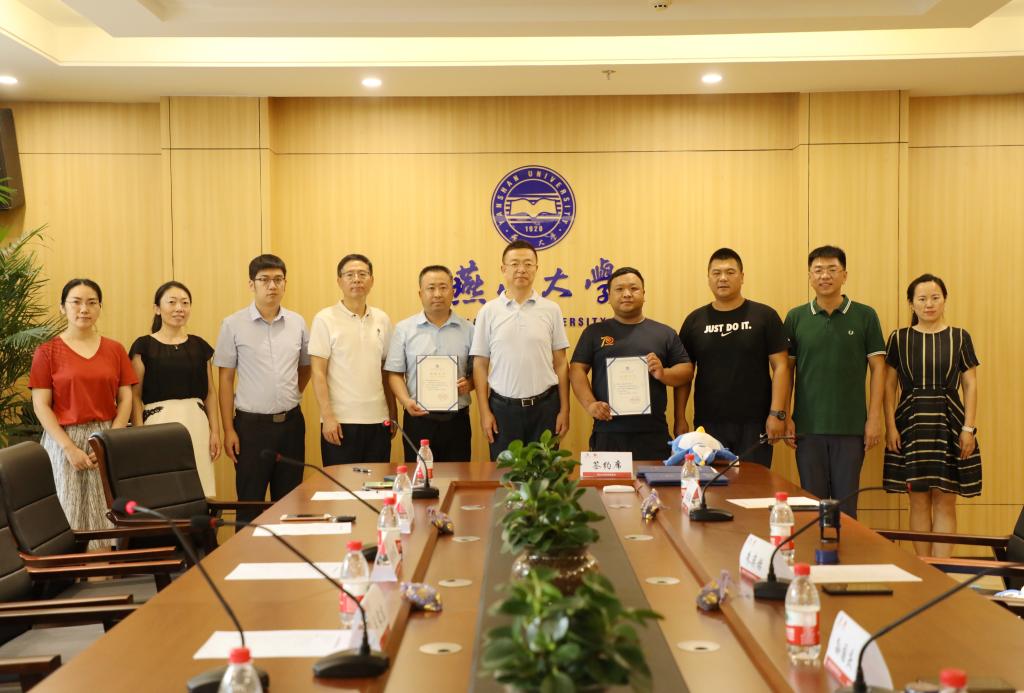 任家东与两个公司的领导签署捐赠协议,颁发捐赠证书,并赠送校庆吉祥物“燕宝”。(编辑 褚玉晶)