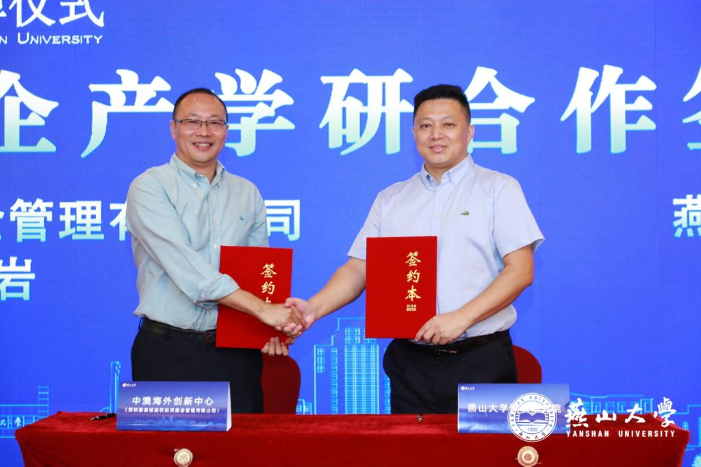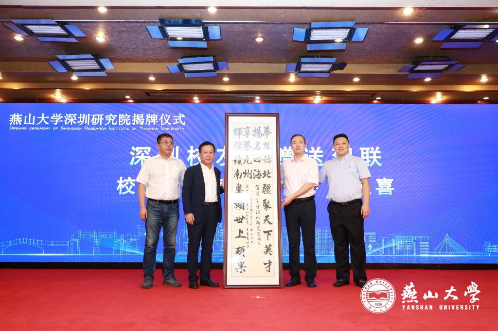 揭牌仪式上,燕山大学深圳研究院与广东烨嘉光电科技股份有限公司、吉利汽车研究院(宁波)有限公司、深圳嘉富诚股权投资基金管理有限公司进行了合作签约。深圳校友会还向研究院赠送了贺联,表达了对研究院的美好祝愿。