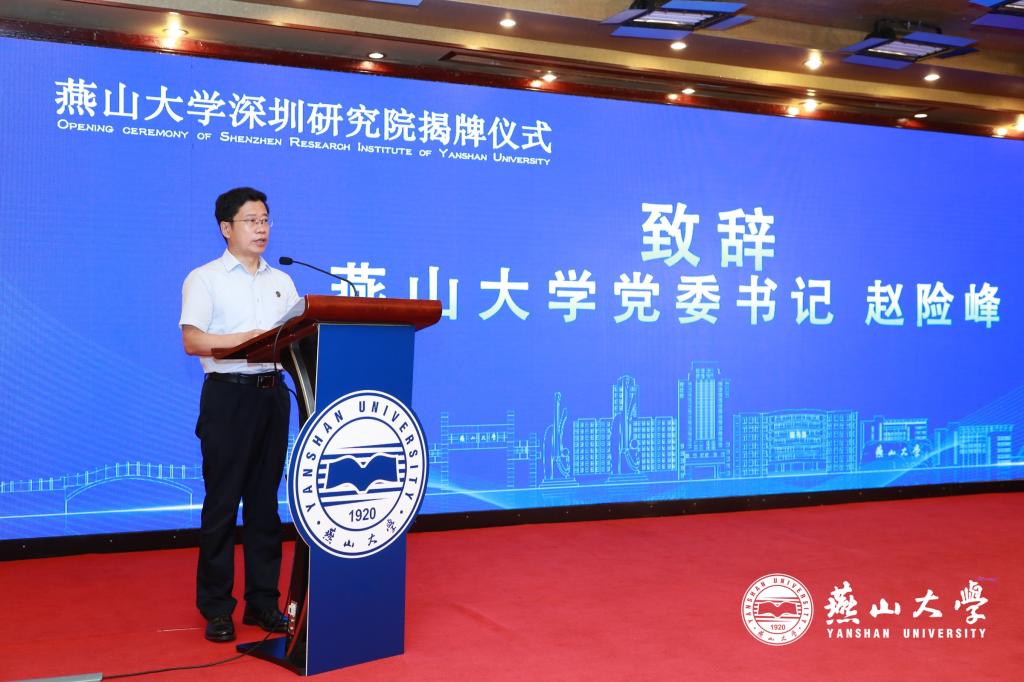 赵险峰在致辞中指出,燕山大学深圳研究院的成立是燕山大学与深圳市校地合作、共谋发展的一件大事,也是为学校百年华诞献礼的一件喜庆盛事。他要求,研究院要迅速融入到“敢闯敢试、兼容并蓄”的特区文化中去,发扬熔铸在燕大人骨子里的奋斗基因、工匠精神、卓越品质和家国情怀,明确方向、找准定位、拼搏实干、追求卓越,扎扎实实开展好各项工作,努力将自身打造成为高端人才引进的新高地,服务国家重大战略的新平台,科技成果转化的新基地。他希望,燕山大学深圳研究院要敢于突破条条框框,建立良性运转机制,勇攀科技创新高峰,为学校早日跻身国家“双一流”建设高校行列奋力拼搏,为地方经济社会发展作出新贡献!