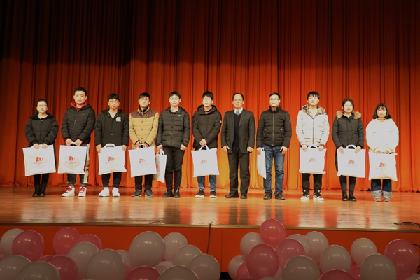 段广仁为在场幸运同学颁发校庆纪念品(王亚培/摄)