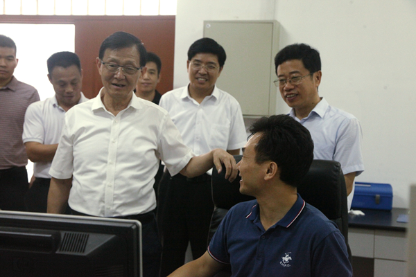 钮茂生观摩特种运载装备研究中心(杨林阚雪/摄 )