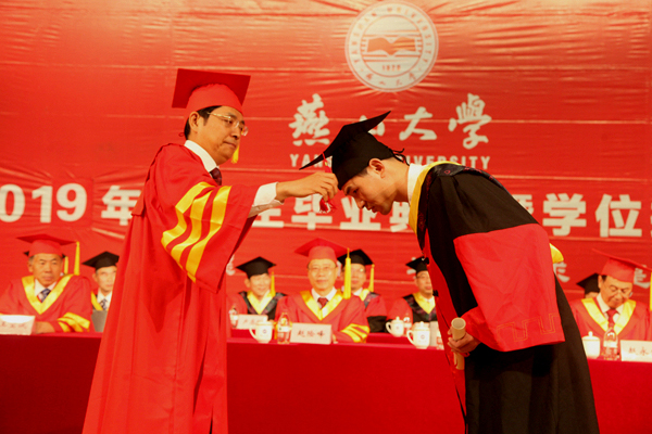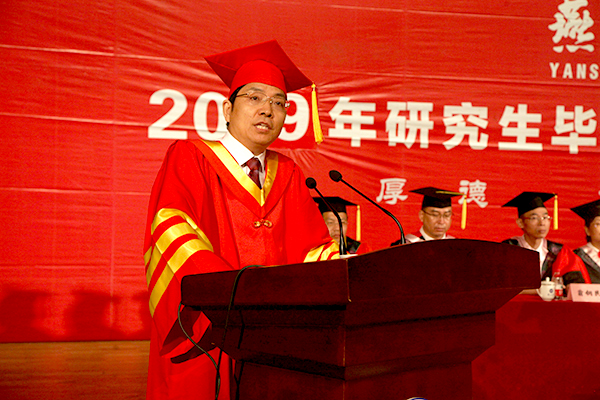 赵丁选在典礼上作了题为《做志存高远、勇于担当的好青年》的讲话。他和毕业生一起回顾了近几年学校在高层次人才队伍建设、教学与科研、学科建设、人才培养、思政建设等方面取得的优异成绩,成绩的取得充分展现了包括广大毕业生在内的燕大人“艰苦奋斗、严谨治学、求实创新”的燕大精神。作为燕大精神的传播者,赵丁选对广大毕业生在国家的建设中肩负起更高的使命担当寄予厚望,他希望广大毕业生志存高远、勇于担当,在各自的工作岗位上矢志奋斗,做出无愧于国家、民族和时代的历史贡献;艰苦奋斗、砥砺前行,做一个有理想、有抱负的青年人,到祖国最需要的地方去做祖国最需要的工作,不怕吃苦,不怕受累,成就更大的事业;让终身学习成为生活方式和精神追求,培养不断创新的品质,为国家的发展做出应有的贡献。在离别之际,赵丁选表示学校将会永远作为毕业生今后事业发展的坚强后盾,永远作为毕业生难以割舍的精神家园,并预祝广大毕业研究生事业有成,家庭幸福,生活美满!