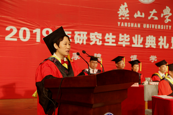 赵永生和任家东分别宣读了燕山大学研究生毕业文件和学位授予文件。信息科学与工程学院孟凡超同学代表毕业生发言,由衷地感谢母校和恩师的培养,并决心秉承燕大精神,奋斗新征程,建功新时代,让“燕山大学”这张名片在各自的岗位上闪耀。环境与化学工程学院博士生导师高大威教授代表研究生导师发言,她对即将走出校园的毕业生满怀信心,希望他们以兼济天下的胸怀,珍惜时间,勤奋创新,乐观向上,在未来的征程中成就更高的人生价值与理想。