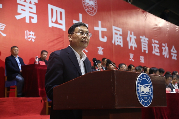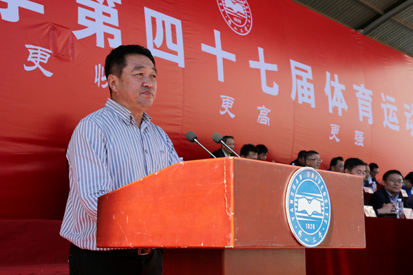 孟卫东宣布燕山大学第四十七届体育运动会开幕(新闻中心鲁景珂/摄)