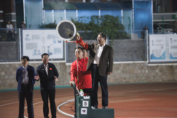 刘宏民为本届运动会鸣放第一枪(新闻中心何静茹/摄)