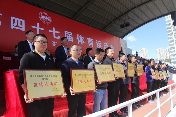 9月30日上午举行的运动会闭幕式由工会主席胡铁巍主持。运动会总裁判长王大鹏宣布了比赛成绩,机械工程学院获得学生组第一名,里仁学院获得教工组第一名,电气工程学院获得学生组第二名、教工组第二名。道德风尚评比组组长仵凤清宣布“道德风尚奖”评比结果,信息科学与工程学院、电气工程学院、理学院、经济管理学院、机械工程学院和里仁学院获得学生组道德风尚奖,电气工程学院、信息科学与工程学院、后勤集团、里仁学院、图书馆以及党政机关获得教工组道德风尚奖。校领导为获奖单位颁发了奖杯和奖牌。