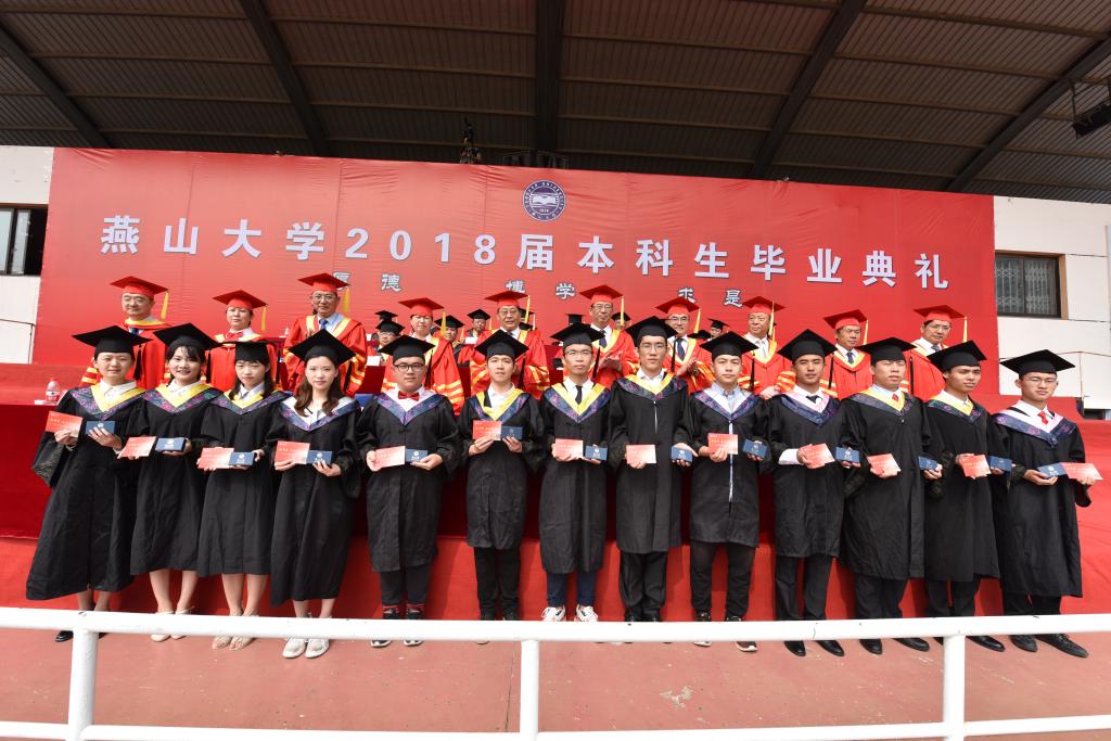 校领导为燕山大学2018届最美毕业生颁发奖杯 (学生工作处供图)