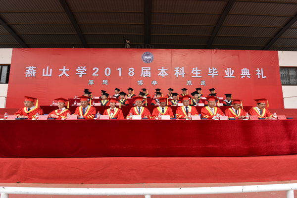 【新闻中心讯】6月26日上午8:30,燕山大学2018届本科生毕业典礼在东校区第二体育场举行。校党委书记孟卫东,校长刘宏民,副校长盛婉玉、孔祥东、张福成、谢延安,校纪委书记李榕,校党委常委王宝诚,副校长黄晟、赵丁选等校领导出席了典礼。相关职能部门和学院负责人、辅导员及部分学生家长,来自14个学院的4500余名本科毕业生齐聚一堂,共同见证这一难忘时刻。毕业典礼由学生工作处处长张明莉主持。