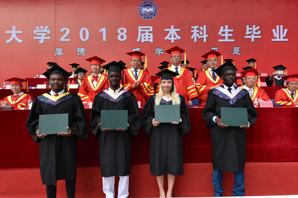 校领导为留学生毕业生授学位 (学生工作处供图)