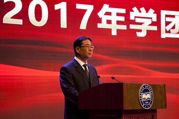 本次学团工作大会添加了诸多新的元素,隆重热烈的会场气氛、形式新颖的颁奖典礼、展示获奖代表先进事迹的视频,处处体现着学校的精心设计,满溢的荣誉感让全体参会学生深受感染,激发向榜样学习、奋发向上的决心。今后,学校还将继续深入贯彻落实党的十九大精神,深入落实立德树人根本任务,不断推动学生思想政治教育内涵式发展,为学校“双一流”建设新征程贡献力量。(编辑/蔡巧怡)