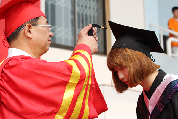 校领导为留学生毕业生授予学位(杨林阚雪/摄)