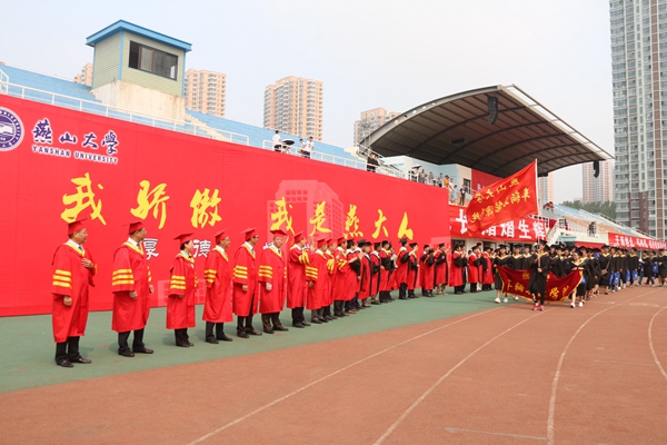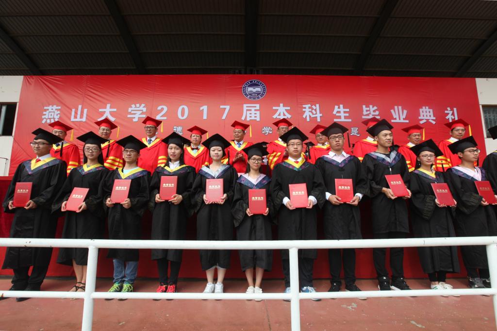 典礼最后,所有领导走到操场留影墙前挥手送别毕业生。伴随着青春激昂的音乐和饱含深情的歌唱,各学院列队依次有序向校领导挥手告别,大家喊出的“我爱燕大”深深感染了所有人。