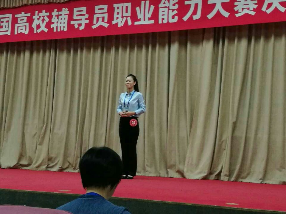 在决赛的五个环节中,王银思全方位、多角度的展现了我校辅导员的“百变形象”:笔试环节中,她是“思考者”,凭借扎实的理论功底、宽口径的知识储备和良好的心理素质,从容应对;主题班会上,她是“引路人”,以“圈中晒温情·指尖传力量”为主题,以新媒体新技术为切入点,采用由点及面、以小见大的教育思路,循循善诱,教育学生在时代进步和祖国发展中承担青年使命、发挥青年力量;案例分析里,她是“探案员”,从互联网舆情监管入手准确把握问题本质,分析精准、研判准确、解决到位,从情、理、法三个层面妥善处理突发事件,更在思考问题的广度深度、处理措施的温度高度上力压群雄,一举摘得该项目桂冠;主题演讲时,她是“演说家”,结合十五年辅导员工作经历,提纲挈领、娓娓道来,完美诠释了“时代·责任·奉献”这一主题;谈心谈话中,她是“好导师”,面对受到“蓝鲸死亡游戏”侵害的学生,以其出色的亲和力、感染力、引导力沉着应对,直面问题、开方出招,展现了我校辅导员深厚的工作积淀和精湛的职业能力。