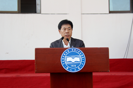 校党委书记孟卫东宣布第四十五届体育运动会开幕。副校长赵永生致开幕辞,他表示我们燕山大学提出了“双一流、双特色”的建设目标,一流大学也应有一流的体育。2013年至2014年,学校投入1200万元改建和新建田径场;2015年至2016年,学校投入415万元用于体育教学科研平台和“学生体质健康测试中心”的建设;2016年学校投入1000余万元进行了东西校区现有篮球、排球、网球场地水泥地面改高品质的塑胶地面工程。高品质运动场地的建设,扮靓了我们的校园,改善了学校的办学条件,为广大师生体育锻炼提供了广阔的空间。体育运动能够强健我们的体魄,健全我们的人格,激发我们的昂扬斗志。体育竞赛的魅力很大程度上在于它既充满挑战又崇尚公平。他希望全体运动员本着“重在参与”的奥林匹克精神,争取更快、更高、更强,努力赛出风格、赛出水平,争取运动成绩和精神文明的双丰收。