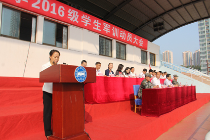 学工处处长张明莉宣读《关于对燕山大学2016级本科生进行军事训练的决定》(张莹/摄)