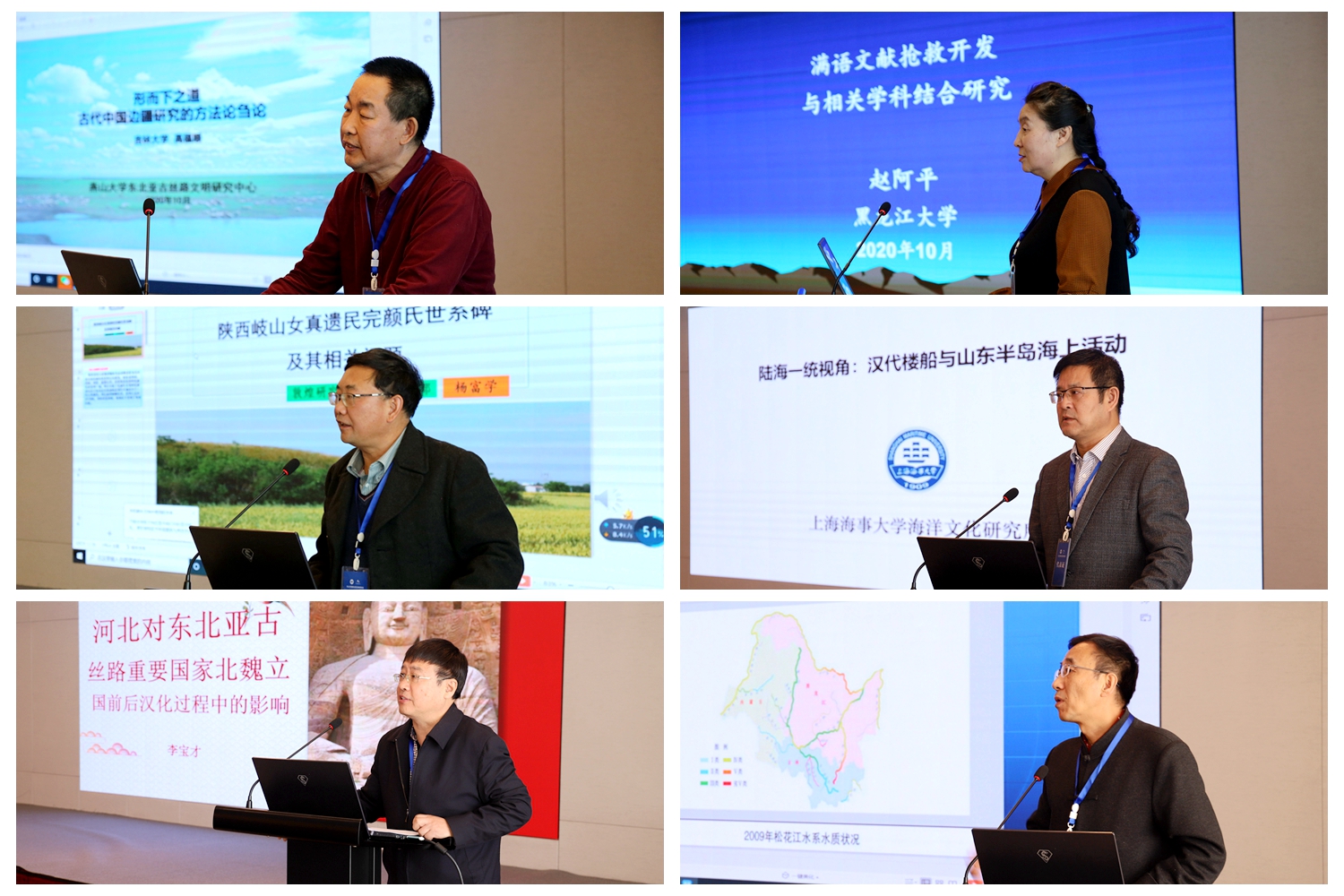 长春师范大学教授付百臣代表参会专家发言,并主持主会场乐竞体育在线报告环节。清华大学国际传播研究中心主任、教授李希光,黑龙江大学黑龙江流域文明研究中心主任、教授周喜峰担任评议人。吉林大学文学院中国史系教授高福顺,黑龙江大学满族语言文化研究中心主任、教授赵阿平,敦煌研究院人文研究部部长、研究员杨富学,上海海事大学海洋文化研究所所长、教授时平,河北省文物局博物馆处处长、研究员李宝才,吉林省社会科学院民族所所长、研究员朱立春等6位学者作了《形而下之道:古代中国边疆研究的方法论刍论》《满语文献抢救开发与相关学科结合研究》《陕西岐山女真遗民完颜氏世系碑及其相关问题》《陆海一统视角:汉代楼船与山东半岛海上活动》《河北对东北亚古丝路重要国家北魏立国前后汉化过程中的影响》《清前后“赏乌绫”制度与东北亚丝绸之路》等主旨报告。