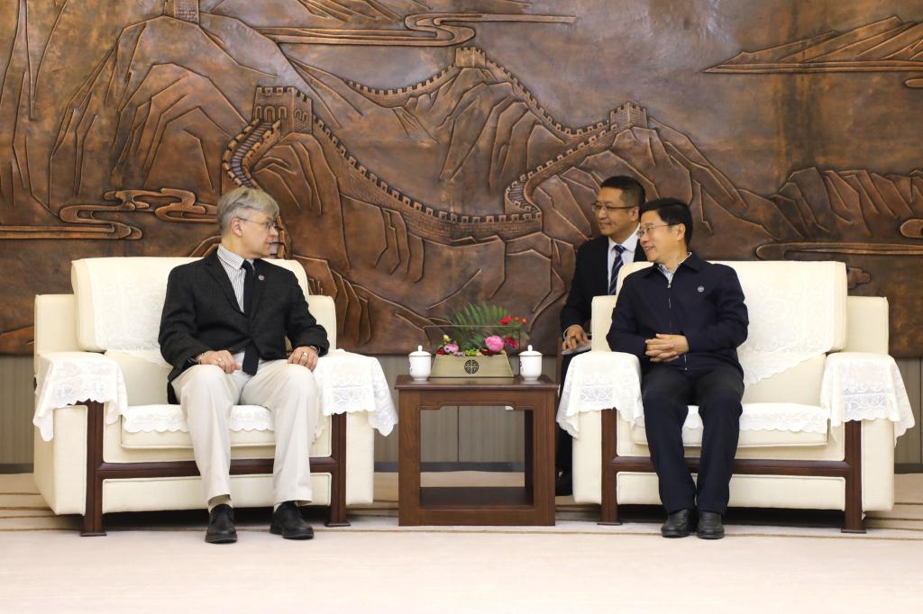 赵险峰和赵丁选与索尔达托夫教授进行了亲切的交流。赵险峰对索尔达托夫教授所做出的成绩进行了高度的赞扬,希望他与田永君院士团队深入合作,做出更大成绩。赵丁选希望索尔达托夫教授能够把他在海外多所高水平大学工作的经验介绍给燕山大学,在学校工作和生活愉快,与田永君院士团队一起把高压科学研究中心建设得更好。