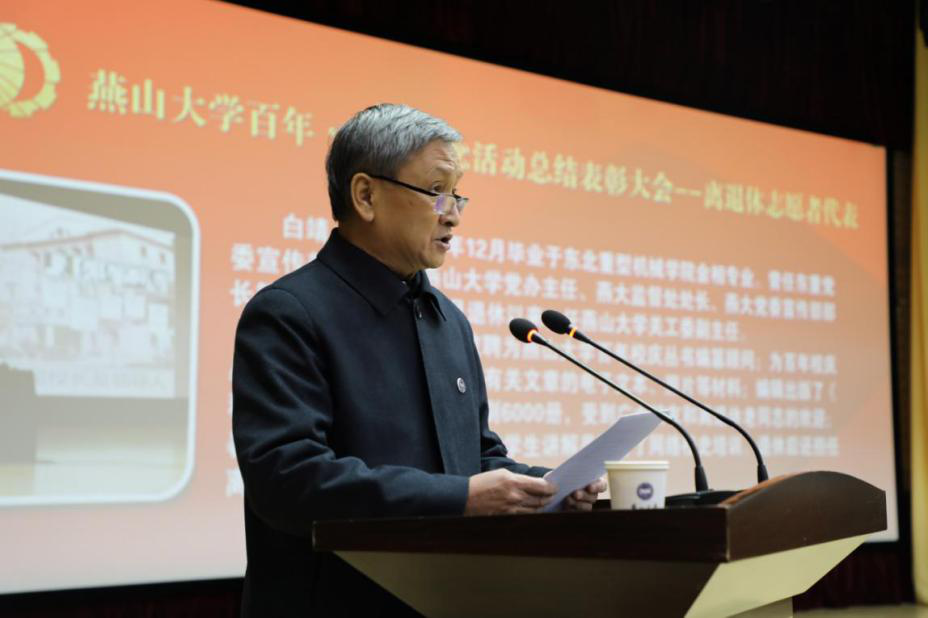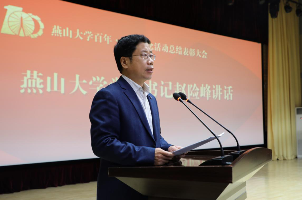 赵险峰表示,百年校庆的成功离不开全体燕大人的精诚团结、众志成城,燕大新百年的发展更离不开全体燕大人一如既往的凝心聚力、奋勇前进。让我们站在新百年的坐标和起点上,接过历史的“接力棒”,以习近平新时代中国特色社会主义思想为指导,坚守“匠心为国铸重器、矢志不移育英才”的初心和使命,发扬熔铸在燕大人骨子里的奋斗基因、工匠精神、卓越品质和家国情怀,以坚定的信心、昂扬的斗志、扎实的作风、务实的举措,全力打好学校内涵式高质量发展的主动战、翻身仗,为实现中华民族伟大复兴、开创燕山大学新百年的美好未来作出新的更大的贡献,以优异成绩向建党百年献礼!