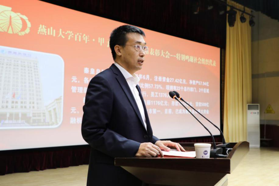 校庆特别鸣谢单位代表秦皇岛银行李国强在会上发言