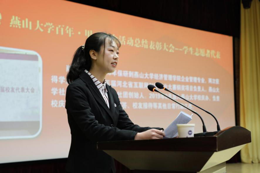 校庆工作优秀志愿者代表肖楠在会上发言