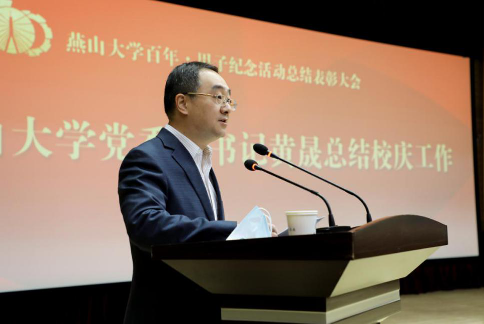 上午10时,表彰大会在庄严的国歌声中开始。燕山大学党委副书记黄晟在总结校庆工作时表示,校庆工作克服了新冠肺炎疫情的影响,严格按照上级部门疫情防控总体要求,百年校庆紧扣“百年燕大·家国天下”主题,按照争创一流、宏大热烈、节俭务实、持久绵长的校庆原则,围绕讲好燕大故事、服务师生校友、同心圆梦一流三大任务,举办了100余项线上、线下校庆活动,全面回顾了燕山大学波澜壮阔的辉煌历程,圆满完成了相关工作任务,取得了良好效果。燕山大学百年校庆成效显著,主要表现在:一是对内凝聚精神,向外展示风貌;二是总结办学经验,弘扬办学传统;三是创新机构机制,提高管理水平;四是改善办学条件,扩大学校影响。校庆已成昨日,新百年已经开启,让我们以习近平新时代中国特色社会主义思想为指导,牢记立德树人宗旨,不忘服务国家社会使命,为争创双一流而努力奋斗!