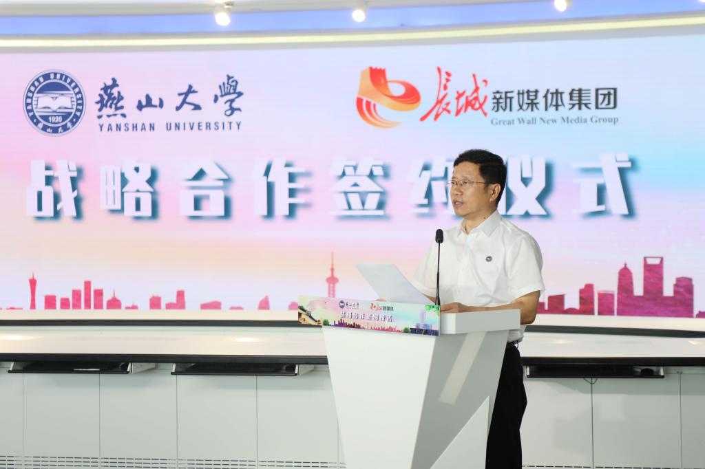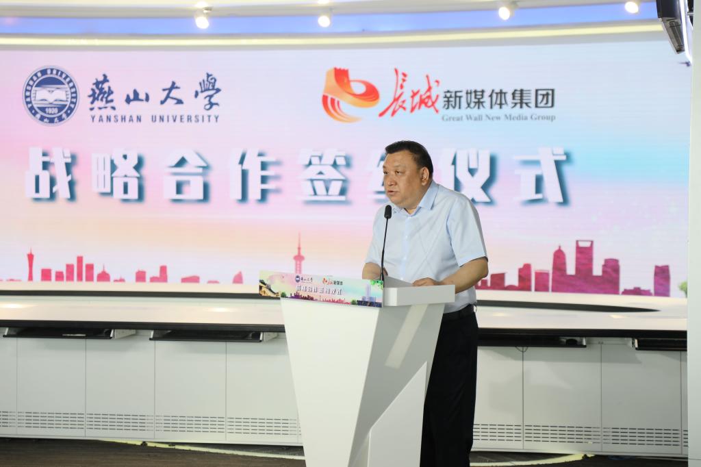 “近年来,长城新媒体集团积极参与燕山大学的宣传报道工作,为燕山大学树立良好的社会形象给予了大力支持,为学校发展营造了良好的舆论氛围。”赵险峰表示,当前,燕山大学正处在奋力开启新百年第四次创业新征程的关键时期,更需要长城新媒体集团的鼎力相助,此次战略签约必将形成优势互补、共赢发展的良好局面。