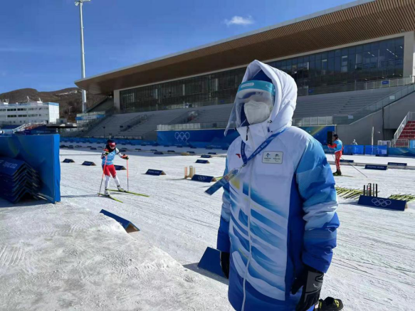 张鸿博是我校体育学院2018级本科生,曾获得团中央“抗击新冠肺炎疫情青年志愿服务先进个人”称号。张鸿博是张家口赛区国家冬季两项中心体育领域志愿者,负责运动员综合区通行管控工作,她是通行管控组中唯一的女生,也是组长,负责核验来到场馆的运动员、裁判员、教练员、以及媒体人员的证件,只要有人在场馆训练或比赛,她就一直守候在风雪中,每天5-10小时的户外工作,零下十几二十度的温度,让她经常冻得手脚失去知觉。张鸿博也是一个细心的“体育人”,体育专业出身的她,羡慕赛场上的选手,更希望自己能够为运动员们提供专业周到的帮助。她发现,运动员训练和赛前,通常会将防护口罩塞进口袋,经过长时间的剧烈运动后,口罩往往会被揉成一团,甚至会被汗水浸透,不但舒适感较差,防护效果也会大打折扣。从此后,她每每在岗,都会随身携带多个备用口罩,看到运动员有需求时,她总能第一时间提供帮助。冬季两项赛事临近尾声时,张家口赛区迎来强降雪,气温也随之下降。一次,张鸿博看到一名观赛的外国友人穿得比较单薄,主动拿出了自己准备值夜班要用的暖贴送了过去,一次次小小的贴心之举,换回了夹杂着各地、各国口音的“谢谢”。