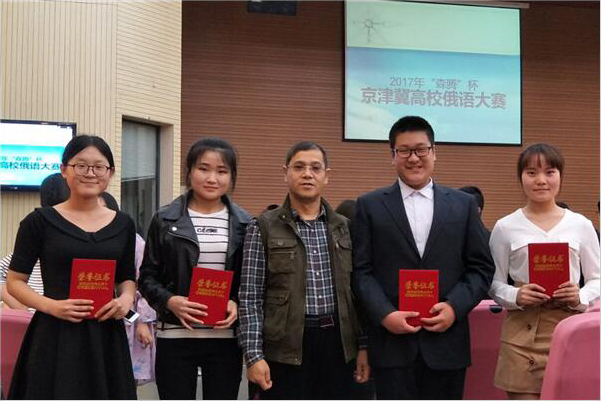 【新闻中心讯】为了配合京津冀协调发展规划,促进京津冀高校俄语专业发展,加强该地区俄语界的交流与合作,4月14日到15日,2017年“森腾”杯京津冀高校俄语大赛在河北省石家庄市举行。经过紧张激烈角逐,来自燕山大学的杨晓霞、王宝泉同学在高年级组中获得三等奖,李雪、张颖在低年级组中获得三等奖。