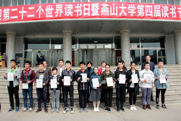 燕山大学学生会主席郑鹏代表全体同学向全校师生读者发出“爱读书·读好书·善读书”的倡议。他倡导大家开卷有益、与好书为友、学以致用,享受读书的幸福,让书香溢满燕大校园。