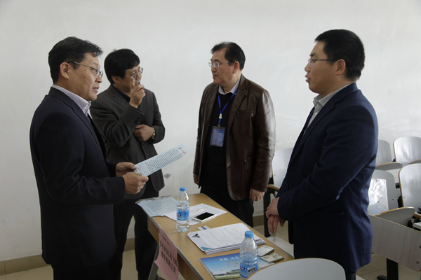 校长刘宏民与副校长孔令富在洽谈会现场视察(李晖/摄)