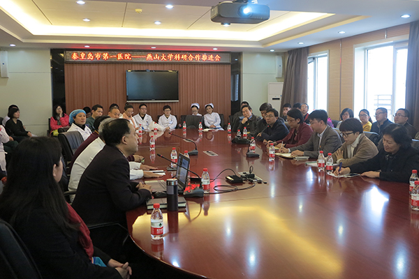 【新闻中心讯】10月27日下午,燕山大学与秦皇岛市第一医院在第一医院行政楼会议室召开科研合作推进会。我校科学技术研究院组织8个学院20余名科研人员与第一医院20余名医疗科研人员就如何进一步加强科研合作展开研讨。