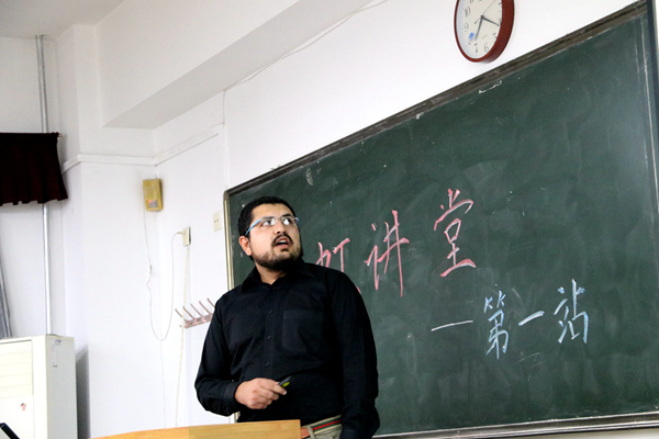 当晚,来自巴基斯坦木尔坦市的李双(Ahmad)同学带来了主题为《Journalism, Media (in Pakistan)From Curriculum to Practice》(译为“巴基斯坦新闻、传媒的课程到实践”)的讲座,外国语学院胡玲老师为现场师生做了全程口译。李双向广电专业同学介绍了巴基斯坦新闻、传媒业发展现状,并分享了他本人参与制作奥斯卡最佳外语片的工作经历。在演讲环节介绍后,李双、吴竞(zain)等巴基斯坦同学还回答了中国同学的现场提问,由于李双等巴基斯坦同学在来华学习汉语之前就已经有工作经历,分享的经验和体会非常具体而实用。因此,互动环节非常热烈。